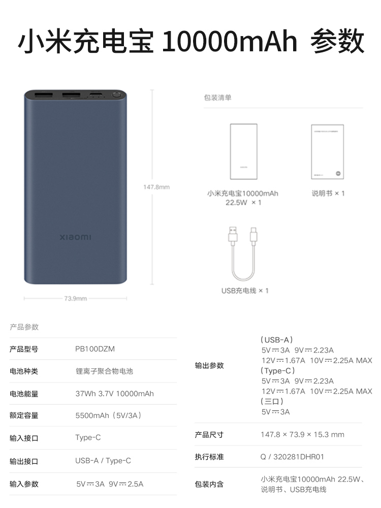 Xiaomi Power Bank 22 5 Mobile Charger 10000mAh Ultra-thin Portable Polymer Mobile Phone Fast Charge Customization