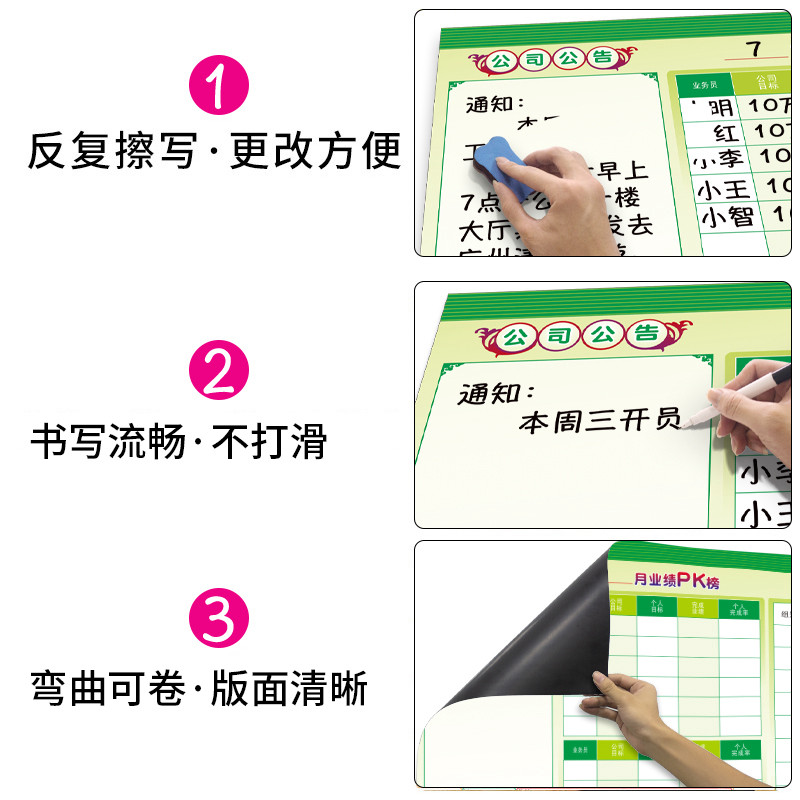 Soft whiteboard Custom Suction Magnetic Enterprise Cultural Wall Employees Bulletin Board Production Watch Board Performance Dragon Tiger List Wall Sticker