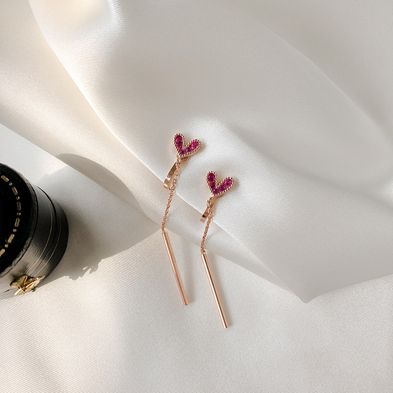 Simple small love tassel earrings long version temperament ear bone nails net red no ear hole ear clip ear needle small drop earrings female