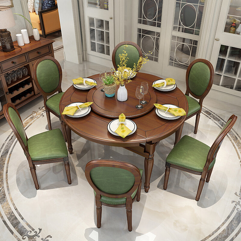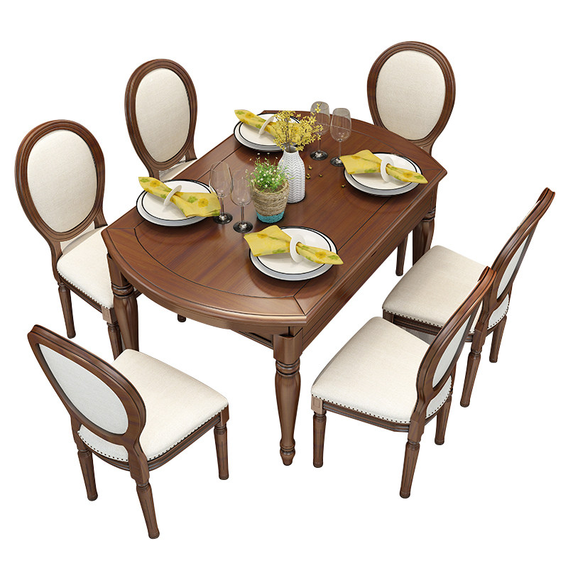 American-style solid wood rectangular dining table and chair combination small apartment multi-functional foldable retractable dining table round dining table