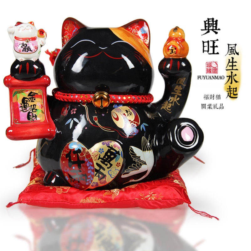 Opening Gift Black Trick Cat Ceramics Deposit Money Pot Shop Front Swing Piece Big Gift Hotel Wine Cabinet Decoration