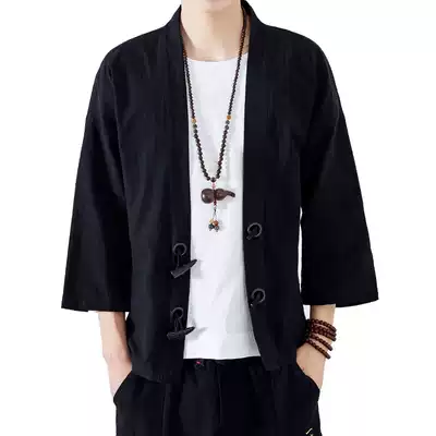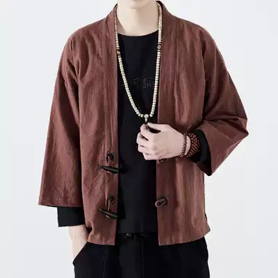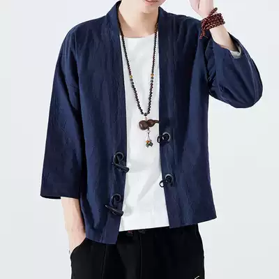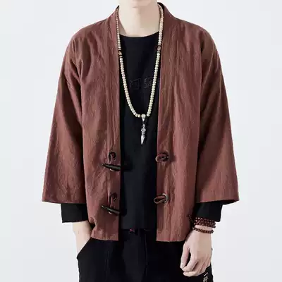 Chinese style men's spring and summer house linen retro jacket Chinese Tang suit kimono Zen dress improvement Hanfu ancient costume