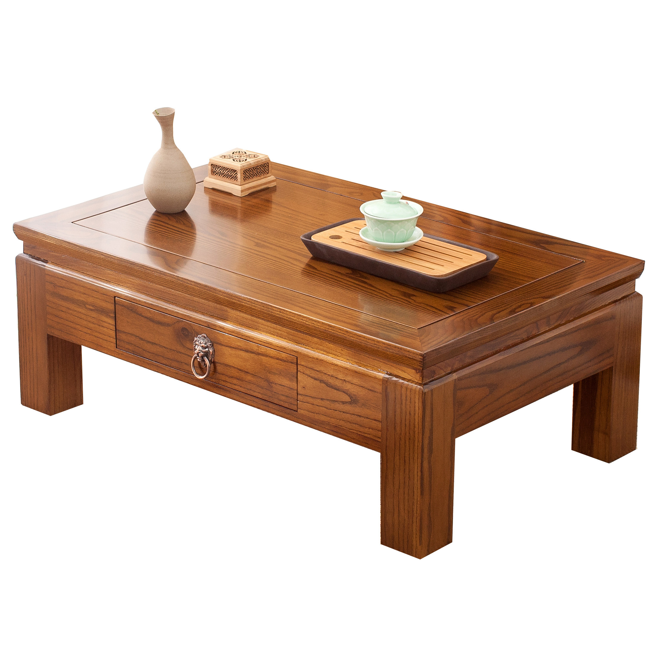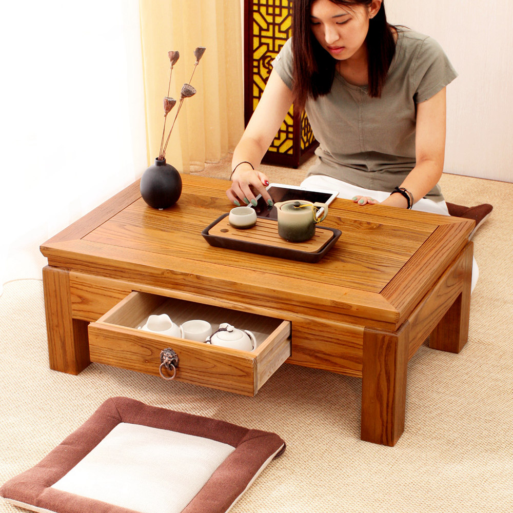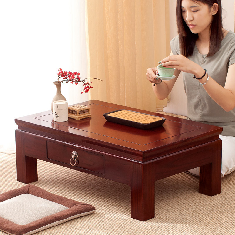 Simple and casual modern Tenon tatami tea table Kang table solid wood bay window small low tea table drawer balcony floor