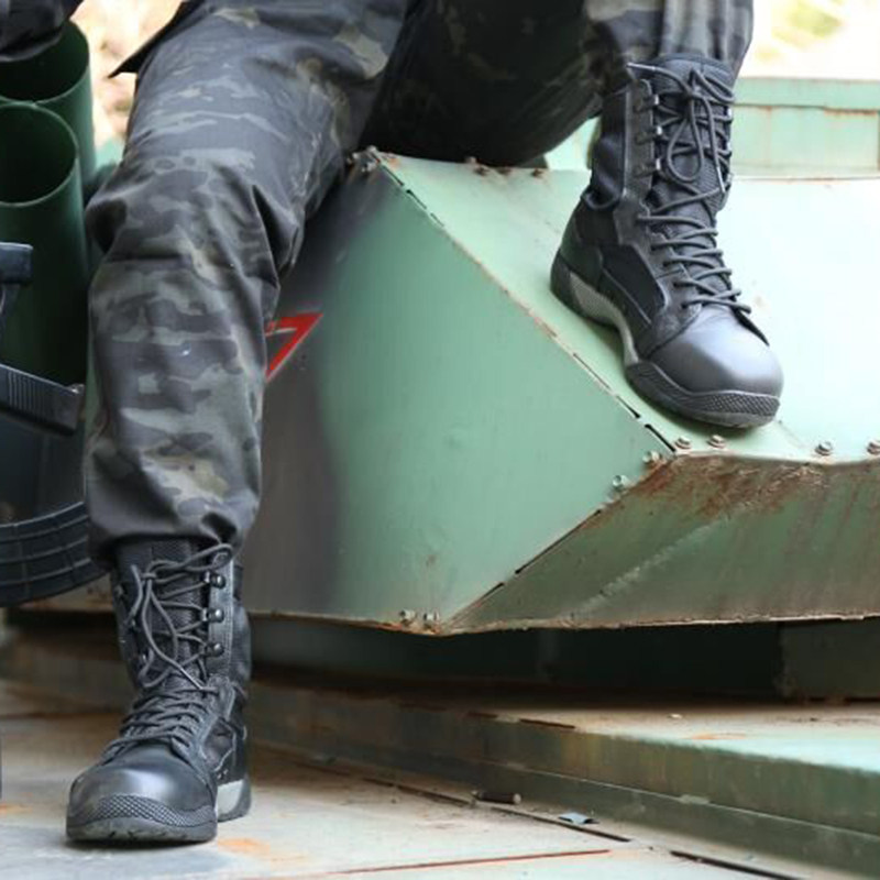 Junlock Black Summer Tactical Dr. UltraLight Combat Boots Breathable Leather Men's Women's Marine Tactical Boots