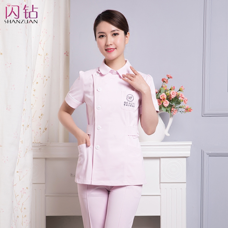 Nurse clothes short-sleeved two-piece suit female summer beauty salon doctor white coat overalls pink round neck doctor clothes