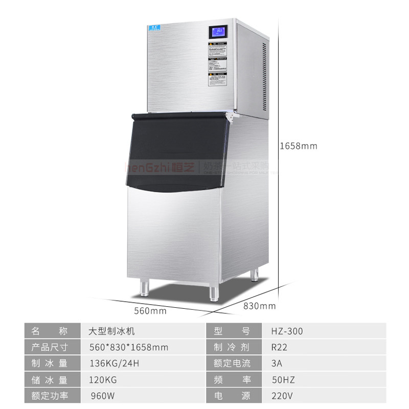 Hengzhi HZ-300p ice machine intelligent version of commercial large-scale milk tea shop automatic large-capacity square ice machine