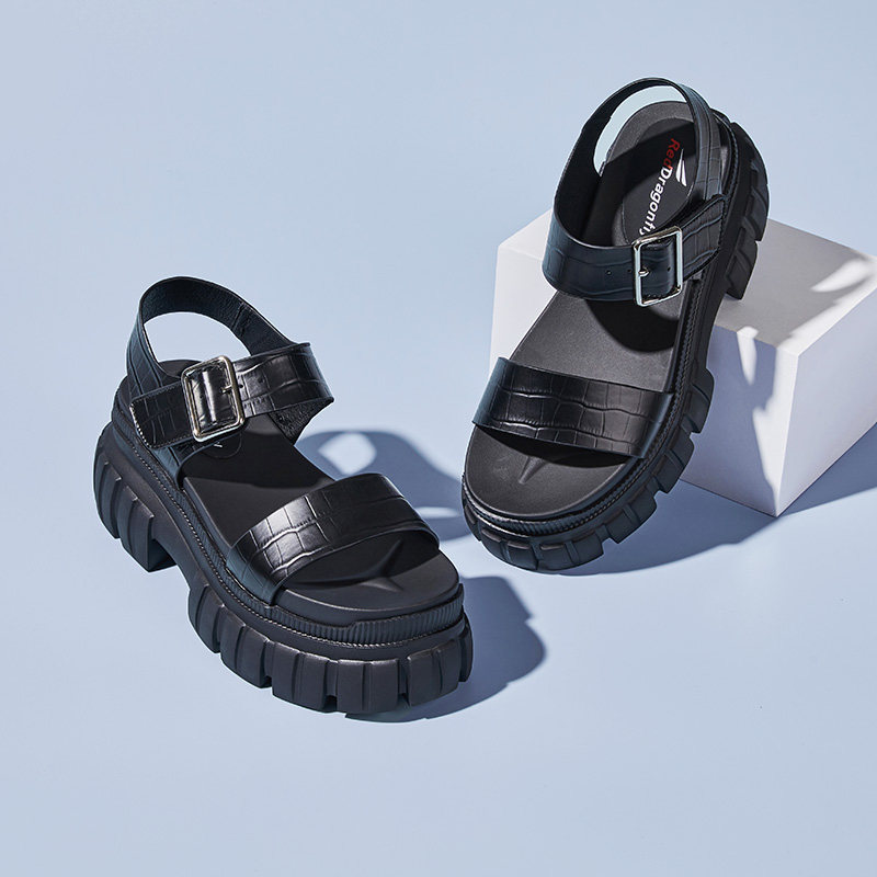 (Brand Ex-gratia) Red dragonfly ladies sandals Summer new casual coarse heels 100 Fashion Sandals Women Slippers