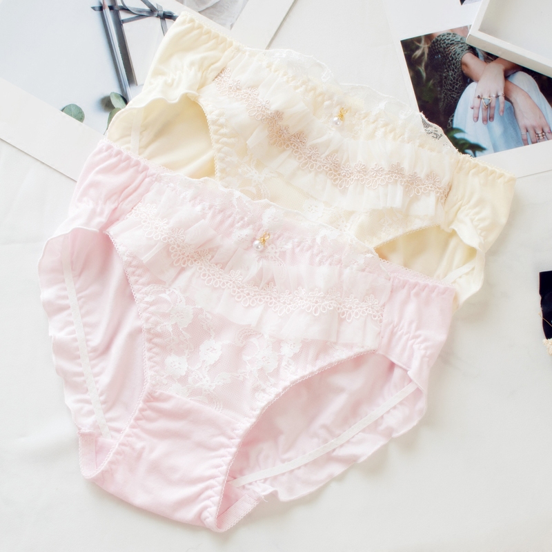 Sweet Princess Pure Cotton Day Ensemble Cute Briefs Schoolgirl Girl High School Girl Macaron Color Cotton Comfort Mid Waist