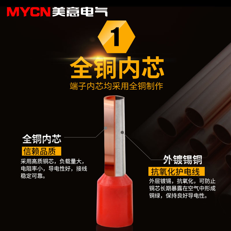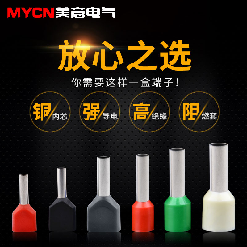 Pipe type pre-insulation terminal TE E series needle shape red copper nose cold pressure tubular European type wiring end head suit