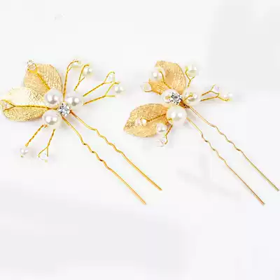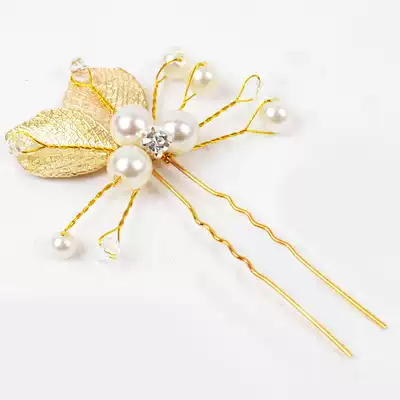 Kameisi golden leaf headdress hairpin imitation pearl hair accessories hand-woven