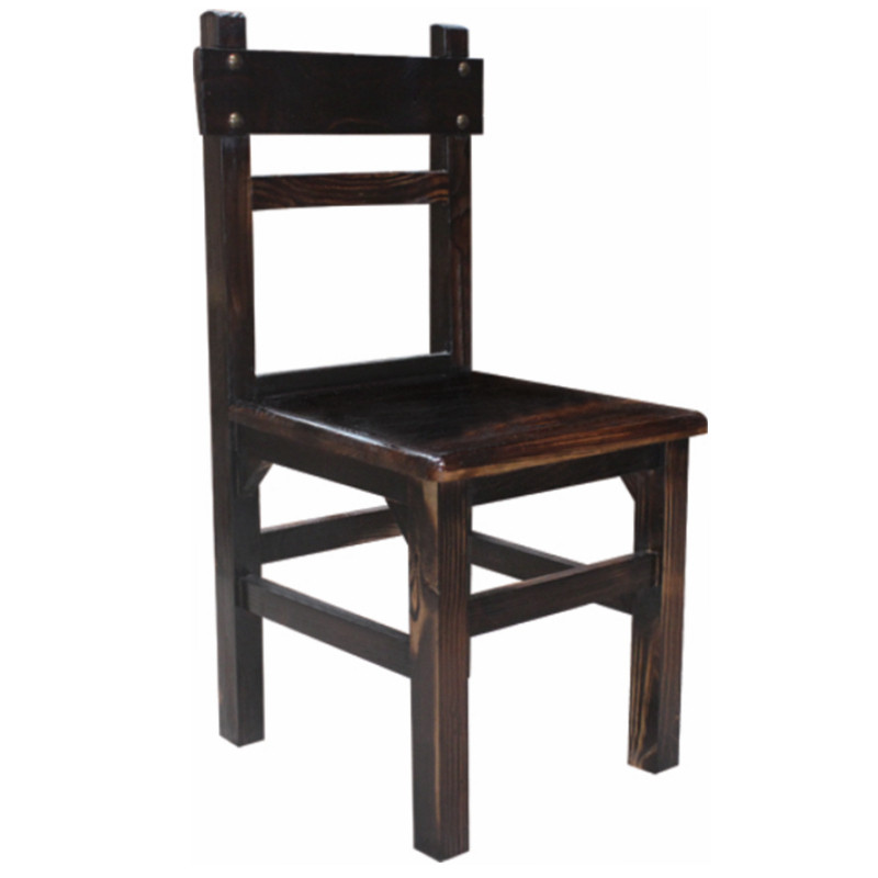 Simple full solid wood carbonized dark black pine curved chair classical economical thickened grained brushed chair