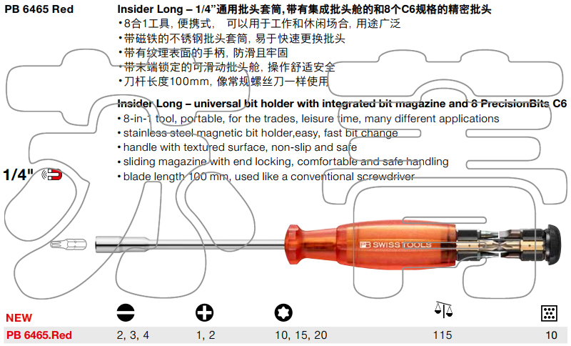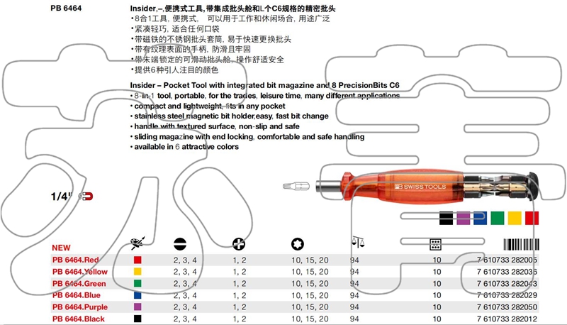 Switzerland originally installed PB SWISS TOOLS batch cabin handle magnetic 1 4 PB 6464 6465 series