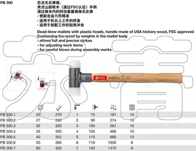 Swiss original imported PB Swiss Tools ni dragon head wooden handle no rebound hammer PB 300 series