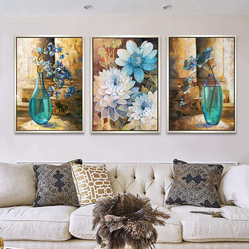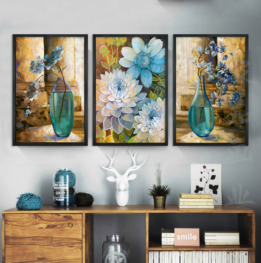 Precise printing cross stitch thread embroidery new living room large bedroom triptych desert rose bottle flower silk thread full embroidery