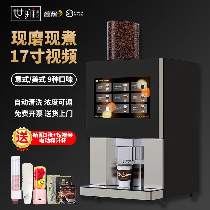 Desktop computer (delivery of coffee bean milk powder cocoa powder) upright machine (17 inch capacitive touch screen advertising frequency) sweep code payment automatic drop cup drop cover double screen for home office commercial (no sweep code)