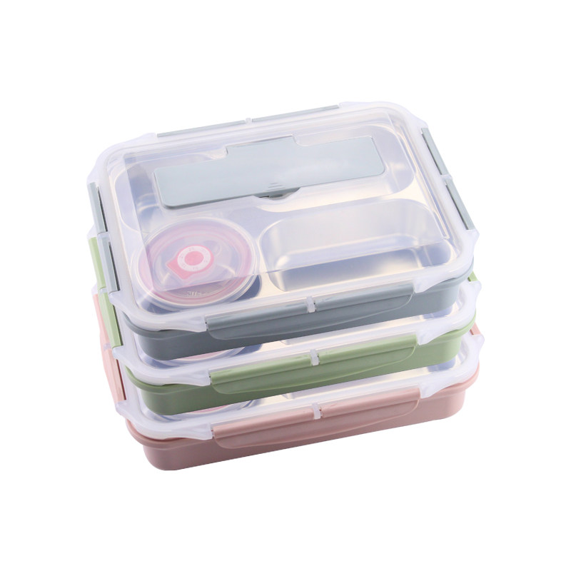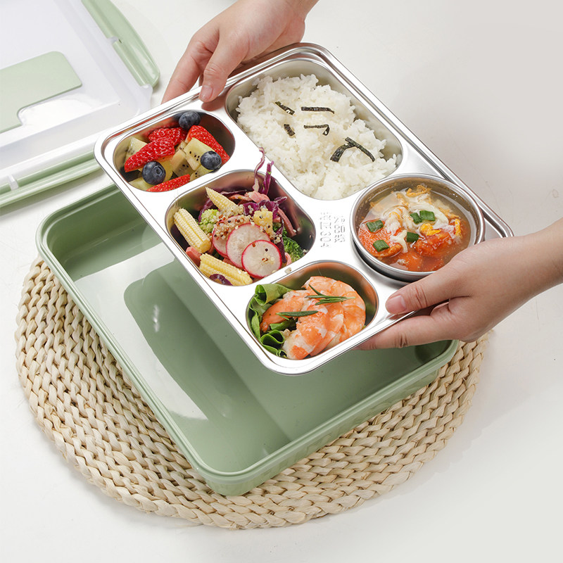 304 stainless steel insulated lunch box rectangular with soup bowl Adult student canteen lunch plate Lunch box five-grid lunch plate