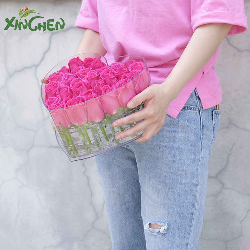 Hinchen Transparent Acrylic Crystal Flower Case Heart-shaped High Overdraft Flowers Packaging Box Rose Case Square Flower Arrangement Box