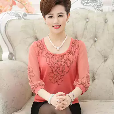 Mother dress spring gauze sleeve small shirt top middle-aged chiffon bottom T-shirt middle-aged and elderly women's summer thin sweater
