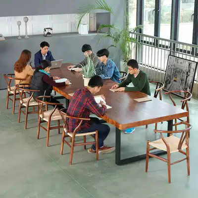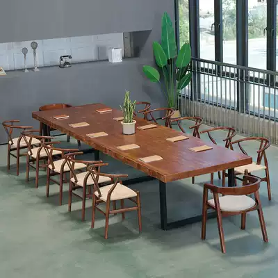 Wrought iron solid wood office desk and chair combination Long conference table Long table Simple modern office desktop trial negotiation table