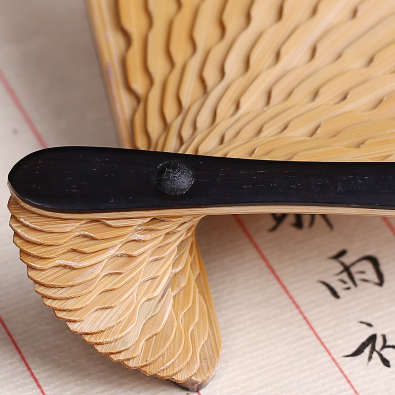 Send fan bag jade bamboo inlaid ebony flip folding fan 9 5 inches 18 square old artist Wen play 95 white jade flower heart fan