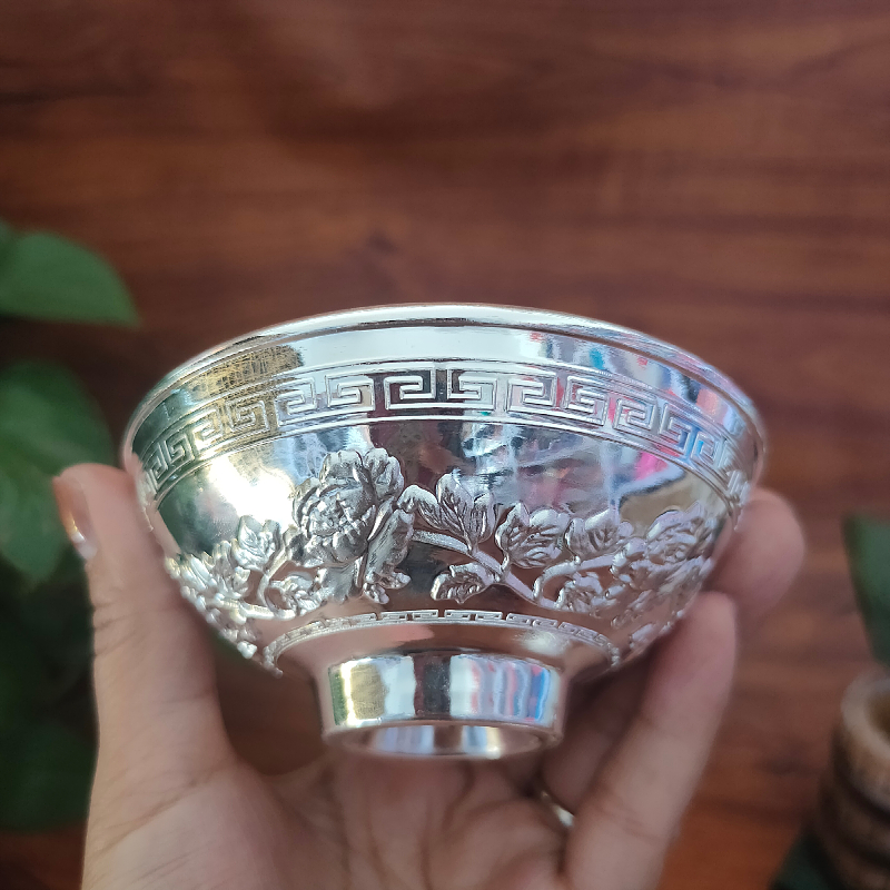 Mongolian silver bowl toasting bowl Inner Mongolia characteristic crafts Alloy silver plated toasting household silver bowl 2 pieces