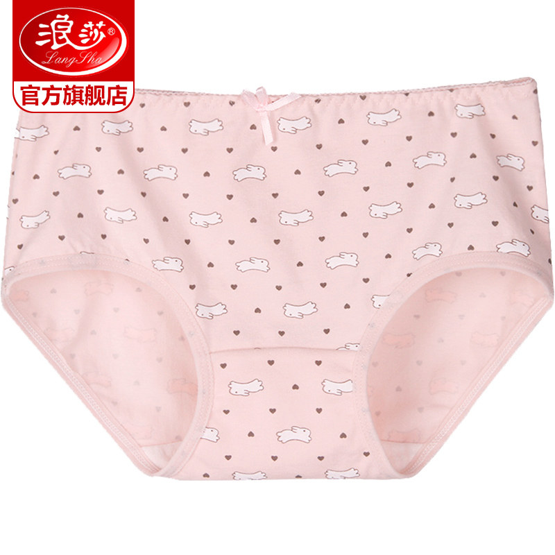 5 Langsha women's panties, women's briefs, mid-waist girls ' printing, pure cotton bottom crotch fabric, shorts, slits, boxed