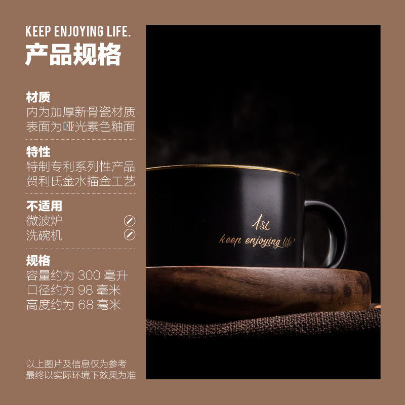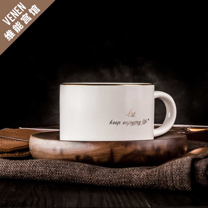 Weineng Palace Pavilion European-style high-end men's office gift gold-plated retro matte black ceramic home coffee mug