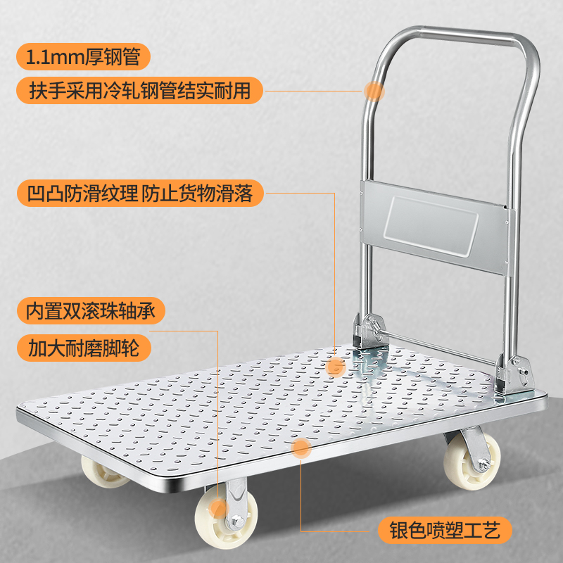 Rongde steel car trolley folding flatbed cart carts truck metal plate truck trailer hand drawn