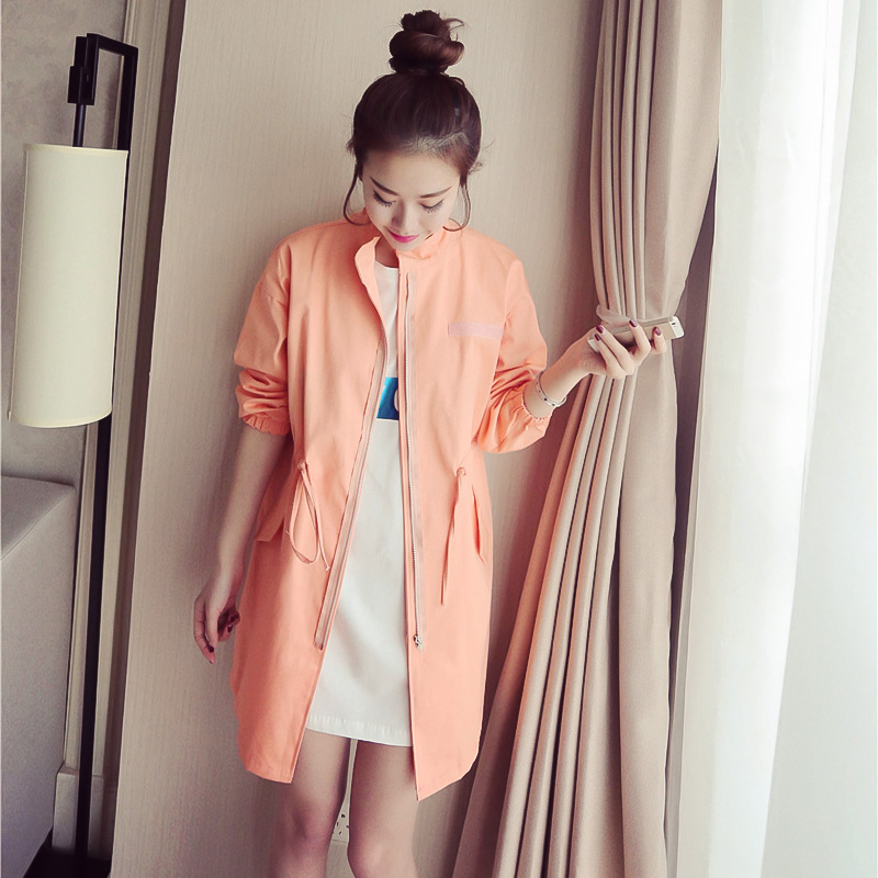 Maternity coat Spring and autumn season outside wear Korean version of the mid-length maternity autumn coat long sleeves top loose plus-size trench coat