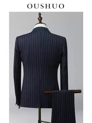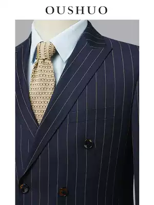 Ou said men's double-breasted suit suit Korean version of slim banquet groom wedding dress British style striped suit