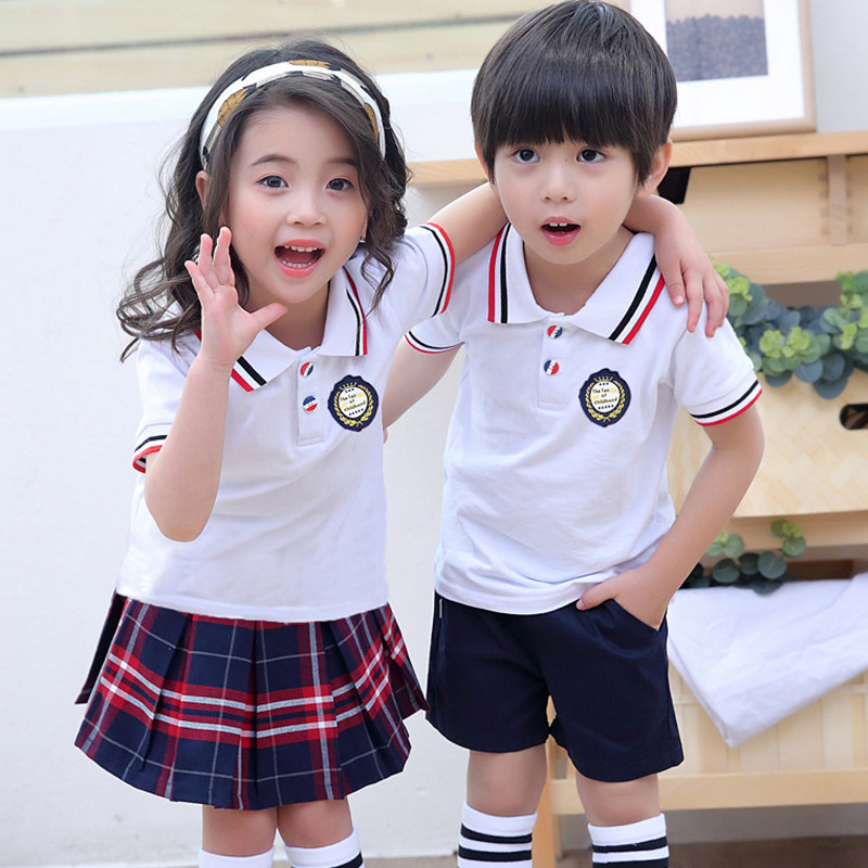 2020 New Kindergarten Garden Uniform Summer Clothing Pure Cotton Suit Summer School Uniforms Elementary School Kids Class Clothes Children Sports Clothing