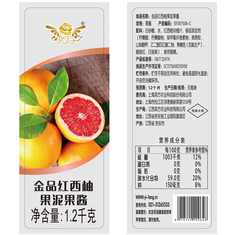 Yifang Jinpin red grapefruit puree concentrated juice puree Full cup of red pomelo fruit tea sauce milk tea shop raw ingredients