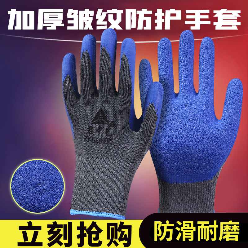 Cotton thread wrinkled laoprotective glove with a cotton thread