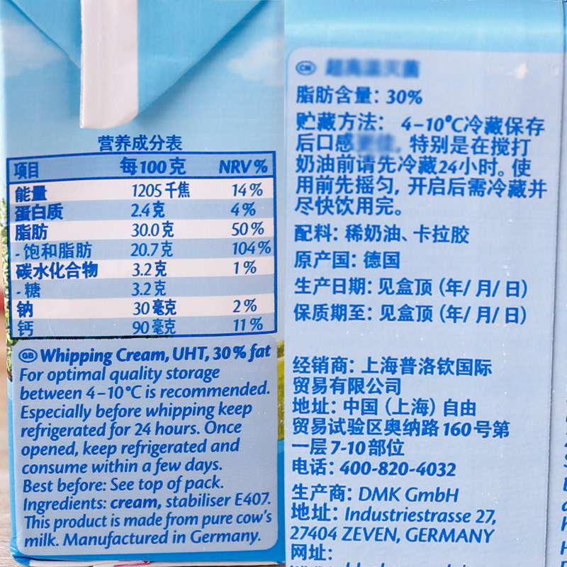 Auderburg Lean Cream Germany Import Light Milk Oil Animal Sex Fresh Cream Cake Framed Baking Raw Material 200g