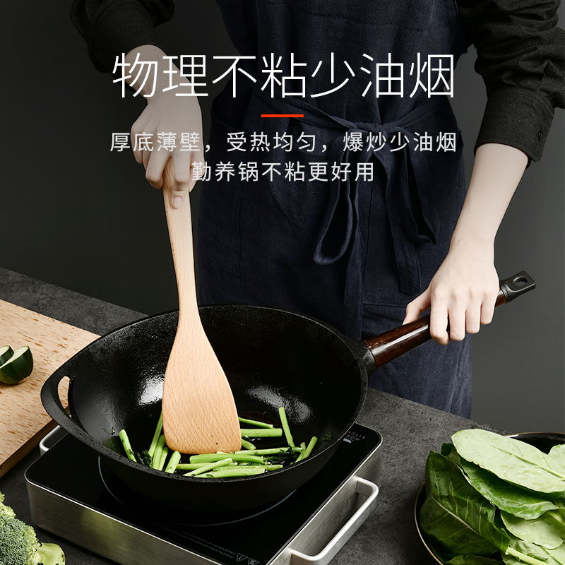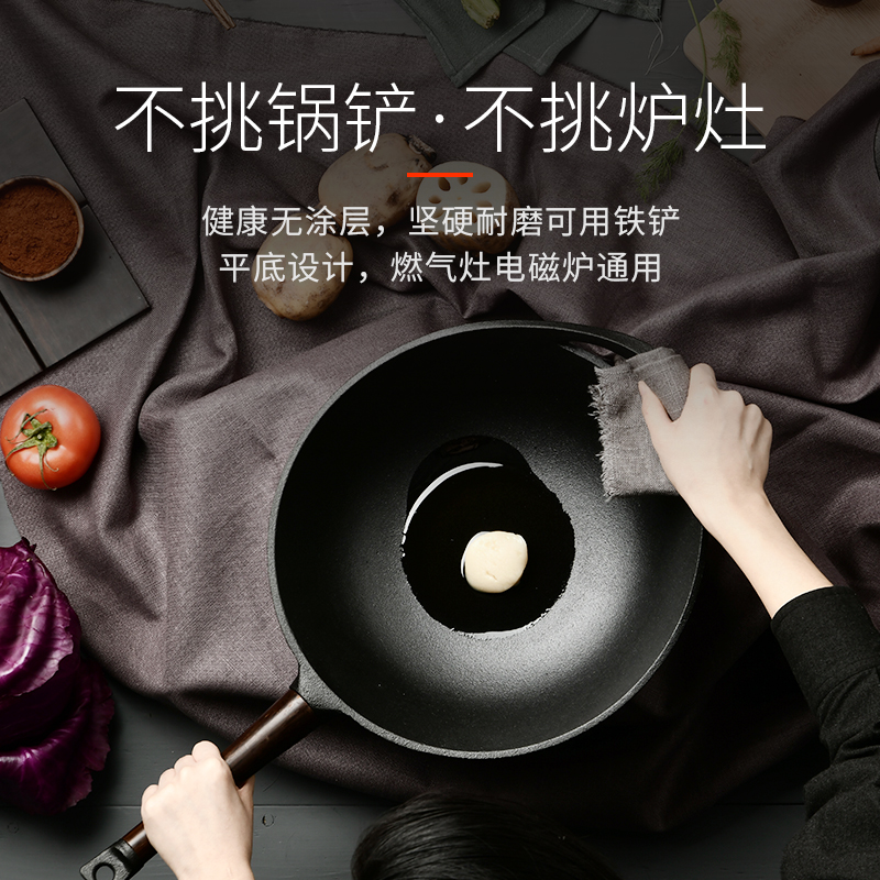 Guihe cast iron pot wok uncoated household old-fashioned pig iron pot is not easy to stick pot Flat bottom induction cooker wok