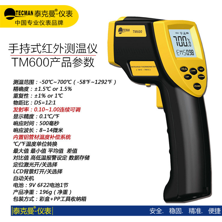 Tekman 950°C TM600 TM750 TM900 Infrared Thermometer Fiber Optic Temperature Gun Refrigerator Thermometer