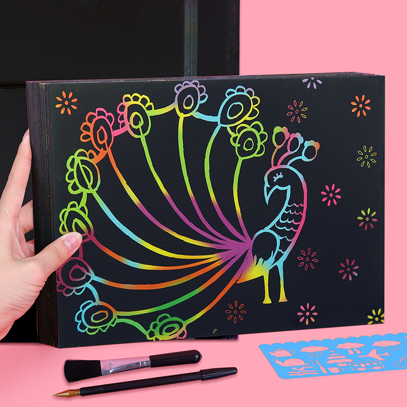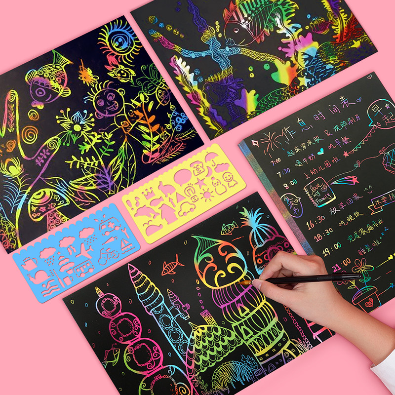 Children's colorful scraped paper 16Ka4 scraped paper creative diy hand graffiti 32 open B5 color star slice scraped scraped wax paper 100 sheets of fireworks castle horse play fairytale student sand drawing paper