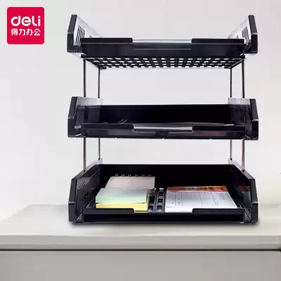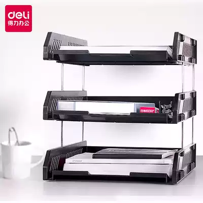 Del business file holder simple file disk three-layer plastic horizontal File frame sorting data storage layer rack desktop file basket office supplies data rack multi-layer combination desktop file bar
