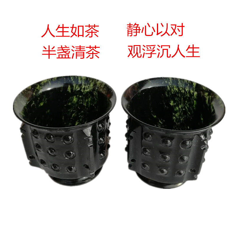 Jiuquan Luminous cup Qilian Ink jade Yuanyang Jade Antique jade Teacup Beer cup Red wine glass Jincheng jade carving Dunhuang