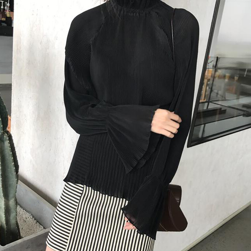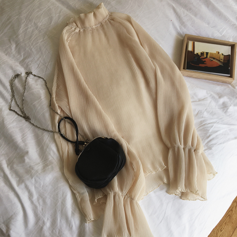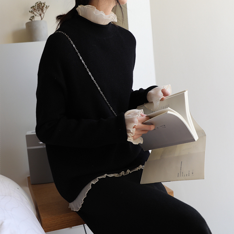 Autumn and winter Korean women retro elegance ruffle collar lace base shirt Lace lantern sleeve Chiffon shirt top