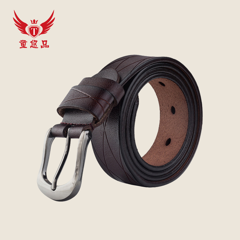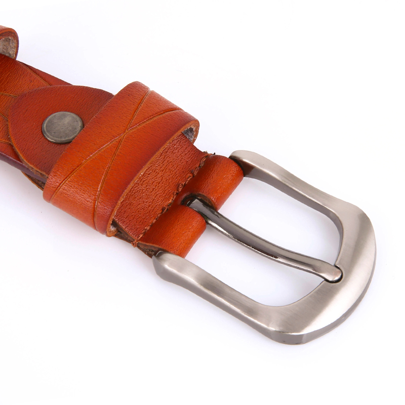 Black cowhide carved belt Yellow cowhide carved belt Coffee-colored cowhide carved belt