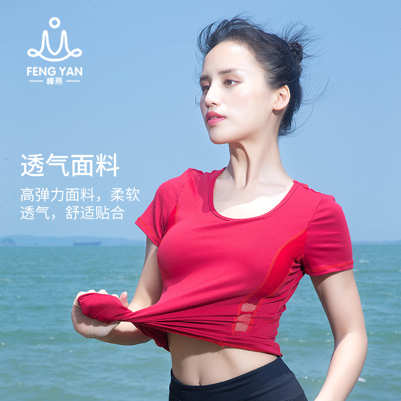 Peak Yan's new spring and summer yoga clothes for women running up to T-shirt expats slim and long sleeves speed dry sports blouses fitness clothes