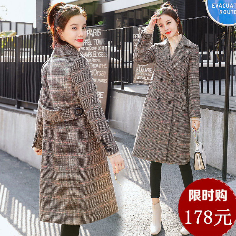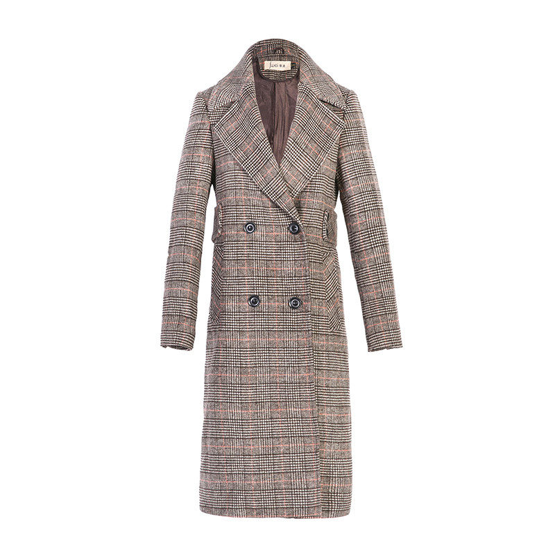 2022 popular plaid autumn and winter new Korean style woolen coat women thickened mid-length houndstooth plaid coat