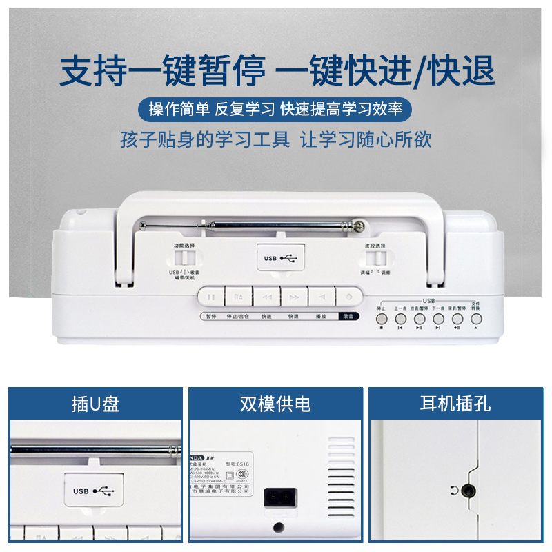 Panda tape machine Teaching plug-in machine U disk transcription MP3 recorder English teaching cassette machine recorder 6516 portable old-fashioned tape plug-in machine player