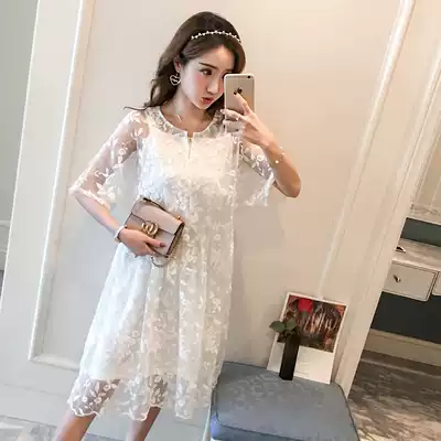 Pregnant women's spring top 2020 new Korean version of the tide mother medium and long version of 3-9 months lace pregnant women's dress summer