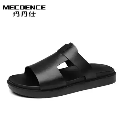 Summer beach slippers men's leather thick soles non-slip wear Korean version of one-word drag casual sandals tide