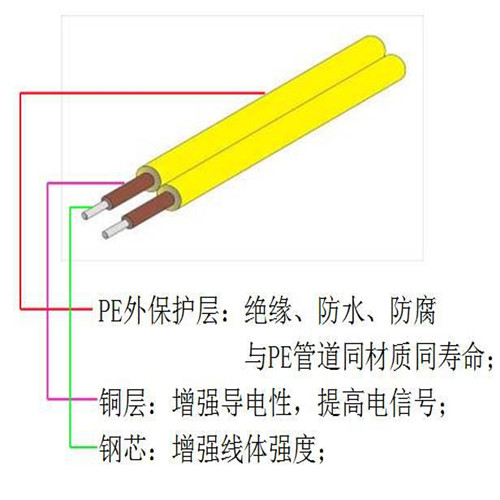 Gas metal tracer line water supply PE pipeline water supply copper clad steel 2.5 square double line buried detection