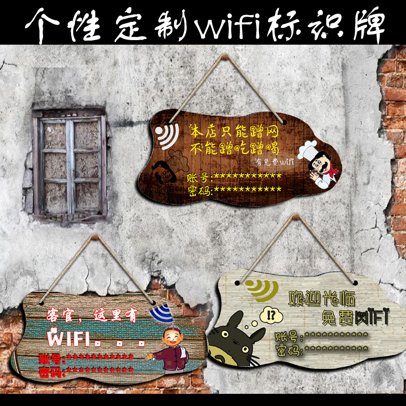Woody personality wifi ID card wireless network prompt card custom wifi account number password decoration listing can be customized