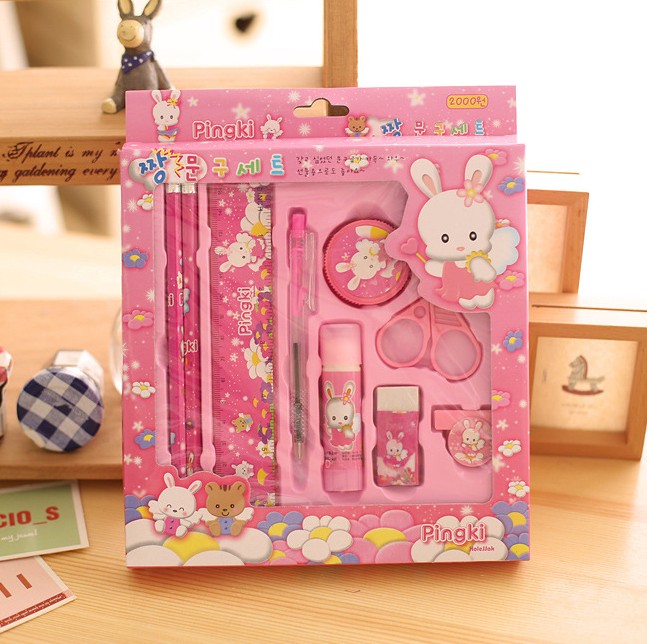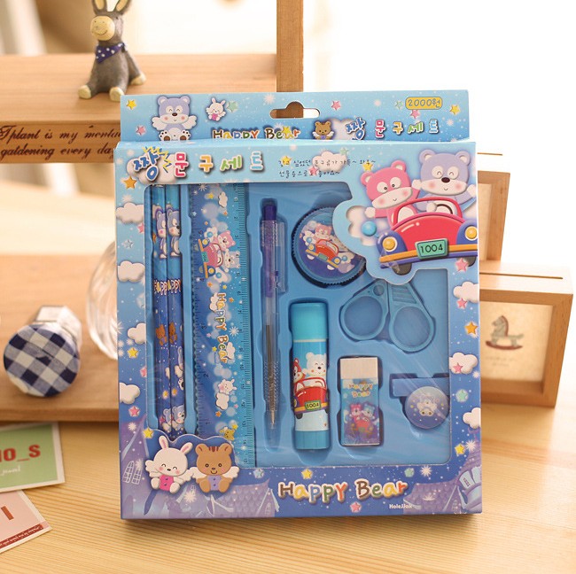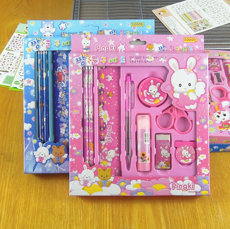 Pink Nine-Piece Set Blue Nine-Piece Set Stationery Five-Piece Set Color Mixed Hair