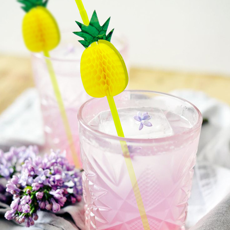 Disposable Plastic Colorful Stereoscopic 3D Pineapple Shaped Honeycomb Soft Straw Thin Beverage Juice Party Decoration 10 Pieces
